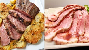 【食べ比べ】焦がしニンニクレア生ローストポーク1本とローストポーク1本セット
