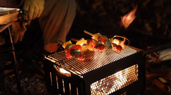 五徳棒をのせて水を沸かしてコーヒーを飲んだり、焚き火をしたりするのに最適です。