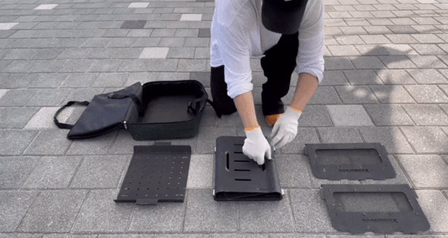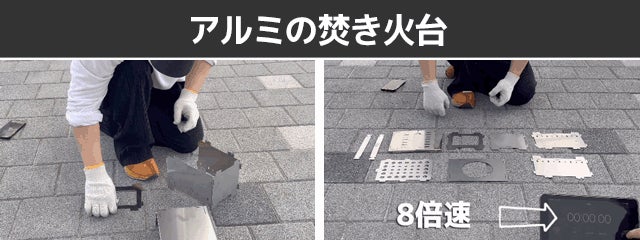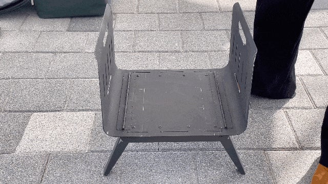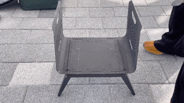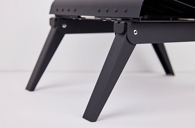 数多くのテストを経て簡単に組み立てが可能な折りたたみ方式を採用し、従来のアルミニウム焚き火台より組み立て時間を10倍以上短縮させることができました。