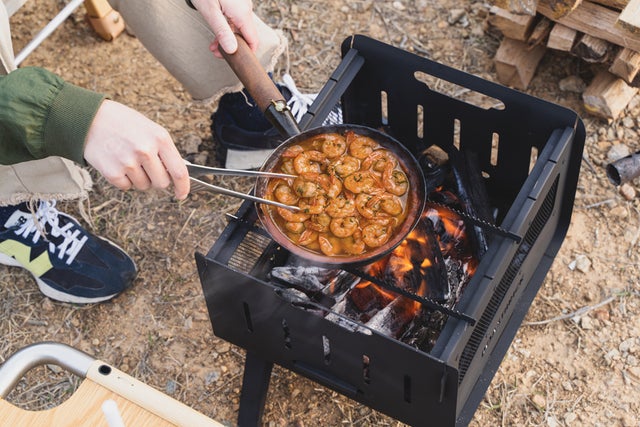 焚き火を焚くときや鍋料理をするときは下段に薪を入れて使ってみてください。