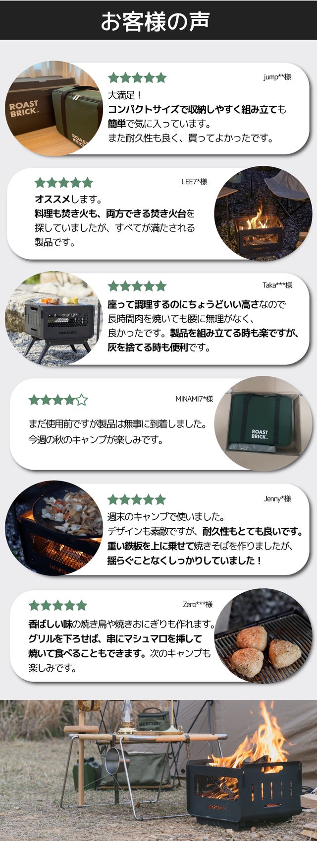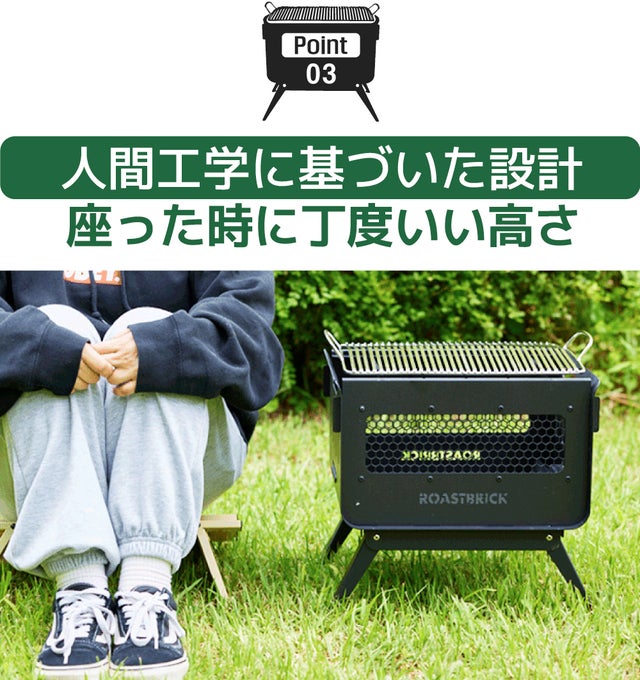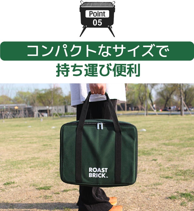 ローストブリックは折りたたみ構造でかさばらないので、保管しやすく携帯にも便利です。