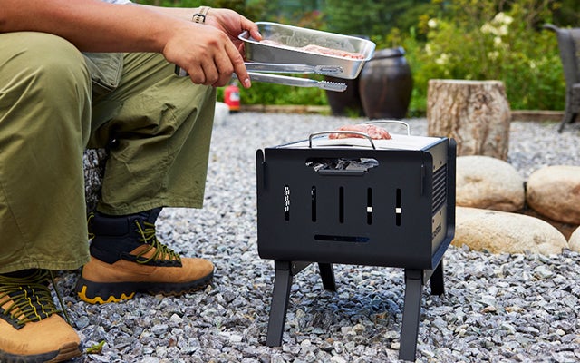ローストブリックの上にグリルをのせて肉を焼いてみてください。