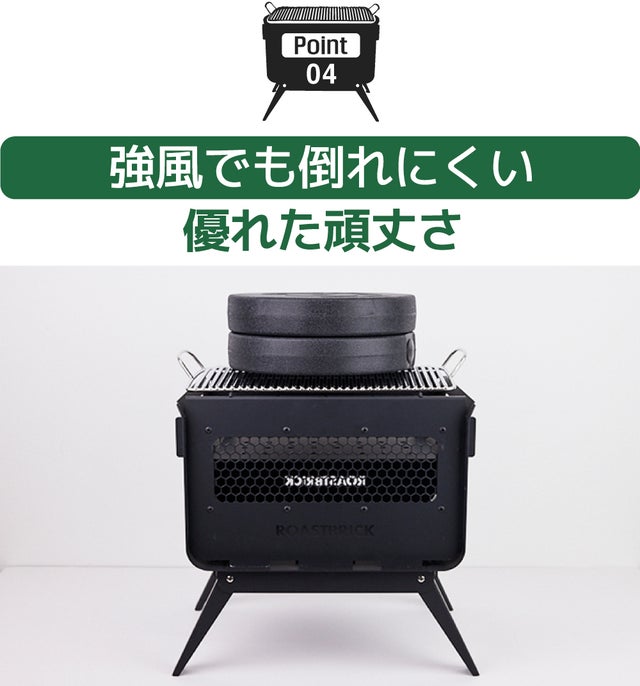ローストブリックの本体はポスコスチールという素材で製作され、優れた丈夫さを誇ります。