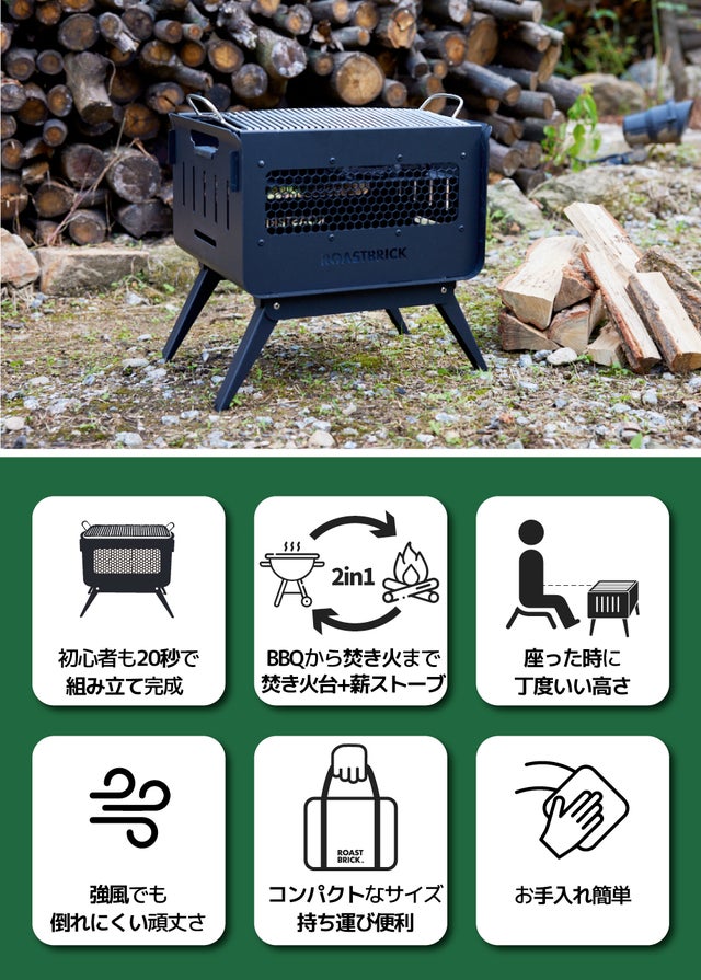 ・この商品を輸入しようと思った理由:ミニマル感性デザインを生かした「ロストフォールディング火鉢台」は従来の焚き火台よりもよりデザインにこだわりました。キャンプでもデザイン性もあり、持ち運びしやすいローストブリックをぜひお試しください。