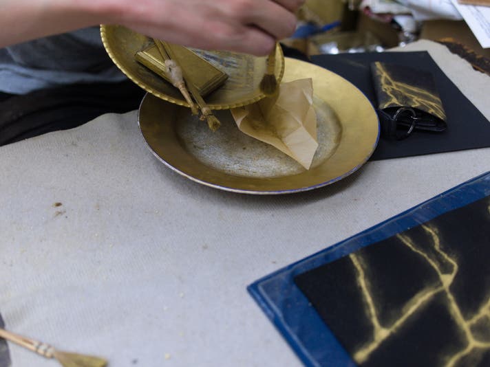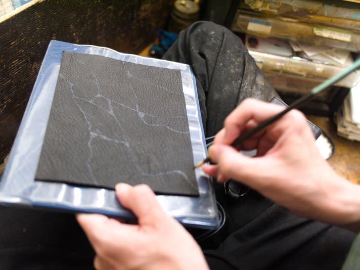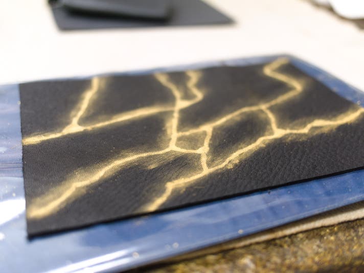 いくつかのクリアしなければならない技術的な問題もありましたが、職人さんの技術と知見によって「金継ぎレザー」が完成し、今回の商品化にたどり着くことができました。