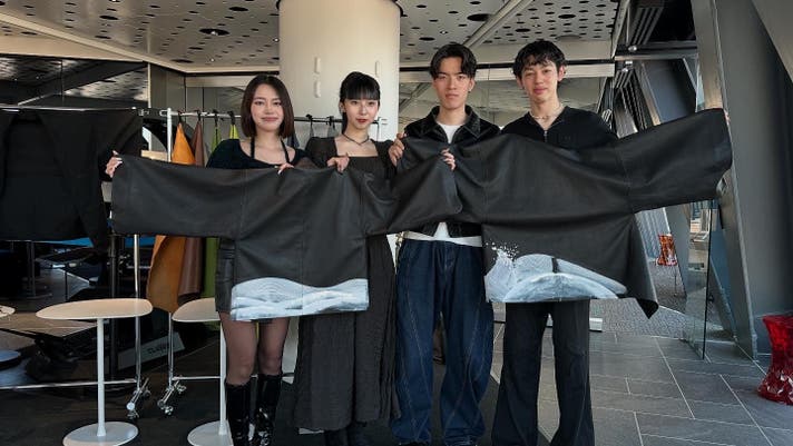 わたしたちはジビエレザーの活用を推進するために、国際ファッション専門職大学の学生たちと一緒に「野生鹿革を使ったレザーHANTEN」を開発にチャレンジしました。