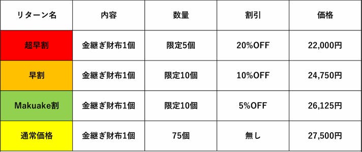 ※皆様の応援購入により量産効率が向上した場合、正規販売価格が販売予定価格より下がる可能性もございます。