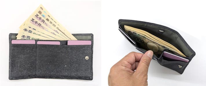 「世界にひとつだけの傷モノ財布」は、見た目以上にしっかり容量が入る構造に仕上げました。
