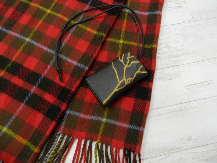 素材:野生鹿革(墨染め)*金継ぎには本金粉を使用