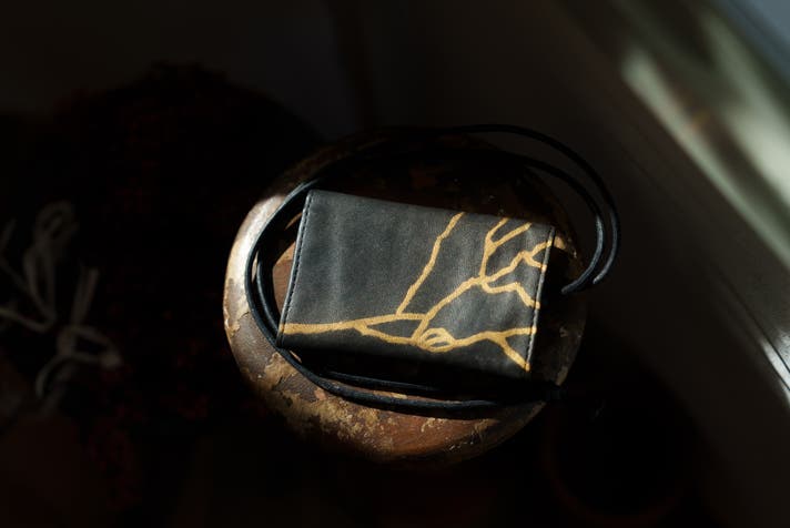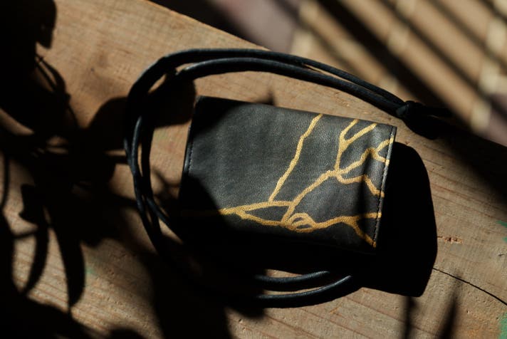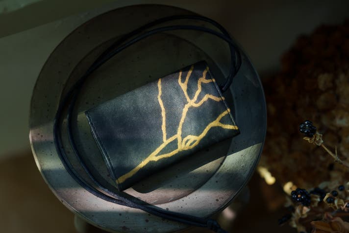 ③ 命の証を、纏う:特殊技術でレザーに「金継ぎ」を施した、唯一無二のミニウォレット