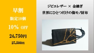 本物の金継ぎ職人によって「野生の傷」は「美しいデザイン」となって「世界にひとつだけの傷モノ財布」が完成します。