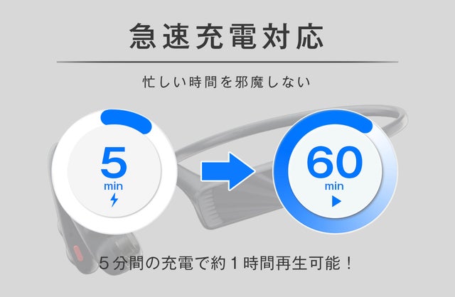忙しい時でも5分間の充電で約1時間使用可能な急速充電に対応しています。