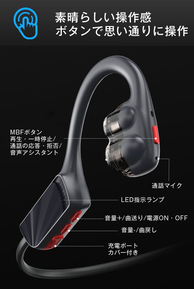 - 新技術!耳に優しい「空気伝導式」イヤホンで音楽を楽しみながら、外音も聞こえる。