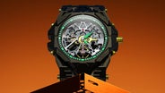 - サファイアガラスとオープンハートが魅せる機械美