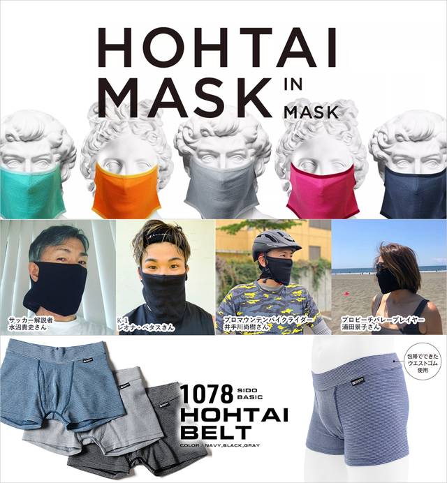 裁断から縫製まで全てが手作りであり、MADE IN JAPANの技術を結集したHOHTAI ATHLETE MASK(包帯アスリートマスク)の完成により、アスリートの本格的なトレーニング、ジムでの筋トレや街中でのジョギング、大量に汗をかくホットヨガ、さらには強度の高いキックボクシングやボクササイズでも快適に運動する事が可能となったのです。