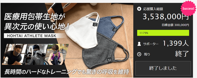 前回のHOHTAI ATHLETE MASK(包帯アスリートマスクにて多くのご支援をいただきましたことを改めて御礼申し上げます。