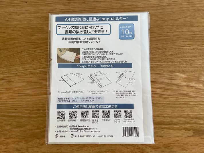 ・「pupuホルダー」は10枚入り/冊、一見、市販クリアファイル似であるが