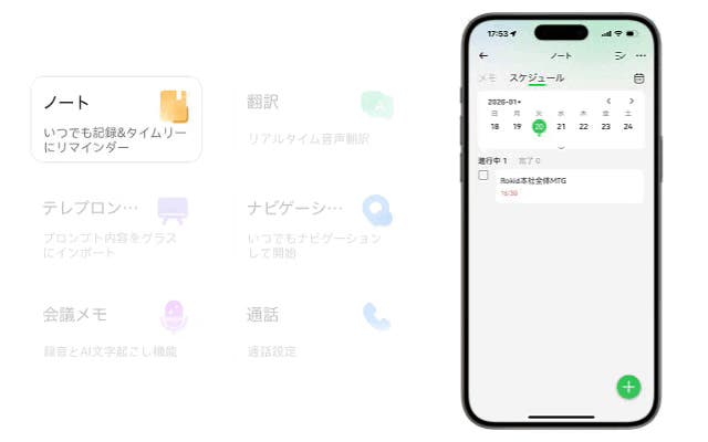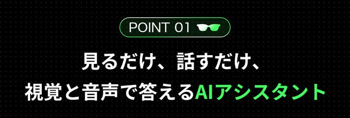 - 通訳・撮影・検索・ナビ・議事録を、視覚と音声で提供するAIアシスタント