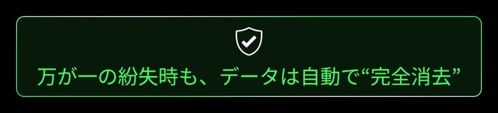 これにより、拾得者や第三者によるデータの閲覧・不正利用を防止し、あなたのプライバシーと個人情報を確実に保護します。
