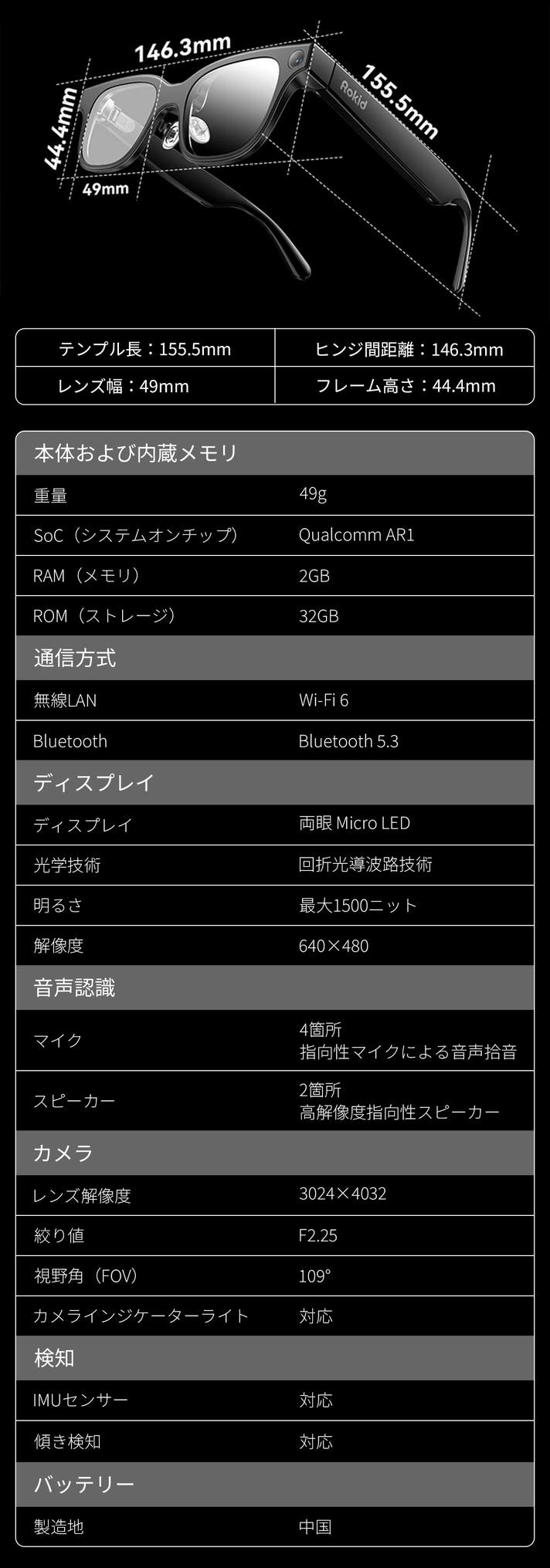 Rokid スマートAIグラス単品