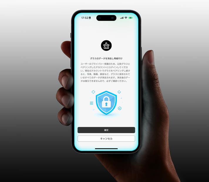 Rokid スマートAIグラスには、紛失時のプライバシーを守るための「データ自動消去機能」が搭載されています。