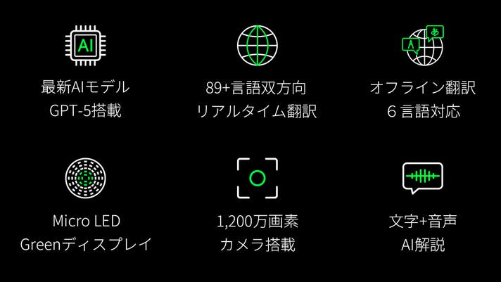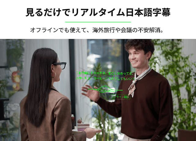 また、主要6言語(日本語、英語、中国語、ドイツ語、フランス語、スペイン語)は、Rokid独自LLMによりオフラインでのリアルタイム翻訳が可能です。
