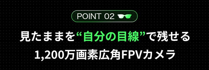 1,200万画素のSony IMX681 センサーを採用し、109° の広視野角(FoV)と F2.25 レンズを垂直配置することで、“自分の視点そのまま” を記録できるFPVカメラです。