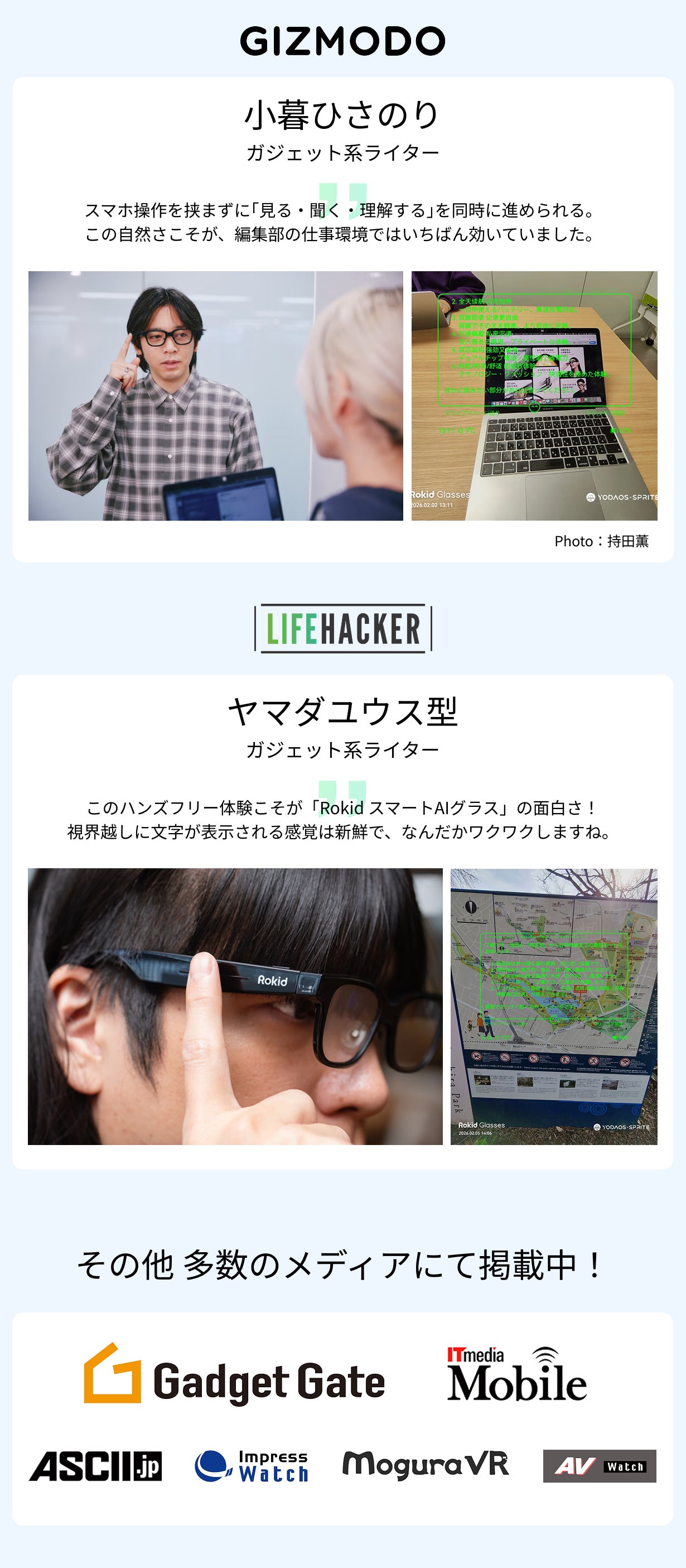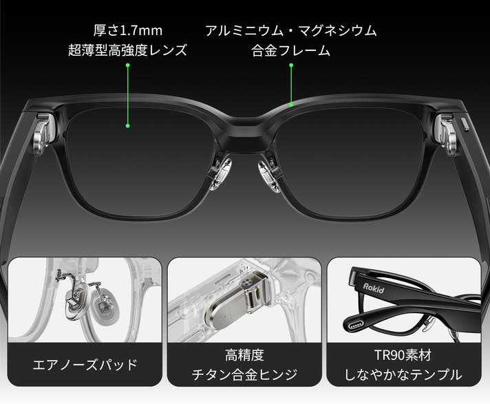 これらの技術が組み合わさることで、「軽さ・性能・快適さ」を極めた唯一無二のAIスマートグラスが完成しました。