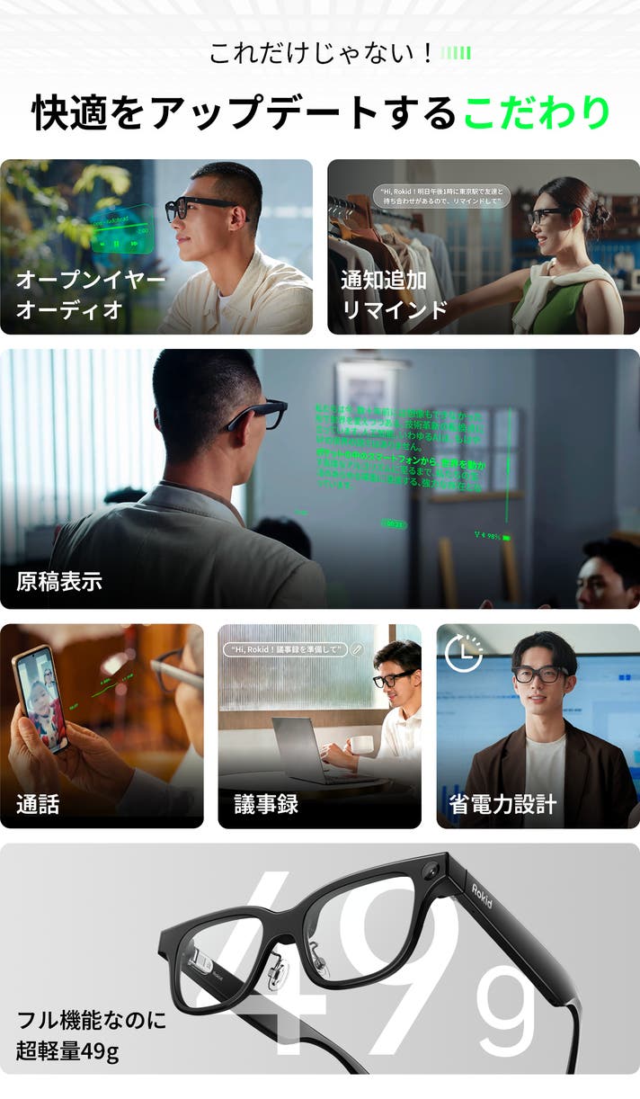 こうした未来の体験を“軽さ49g”という現実的な使いやすさで実現しています。