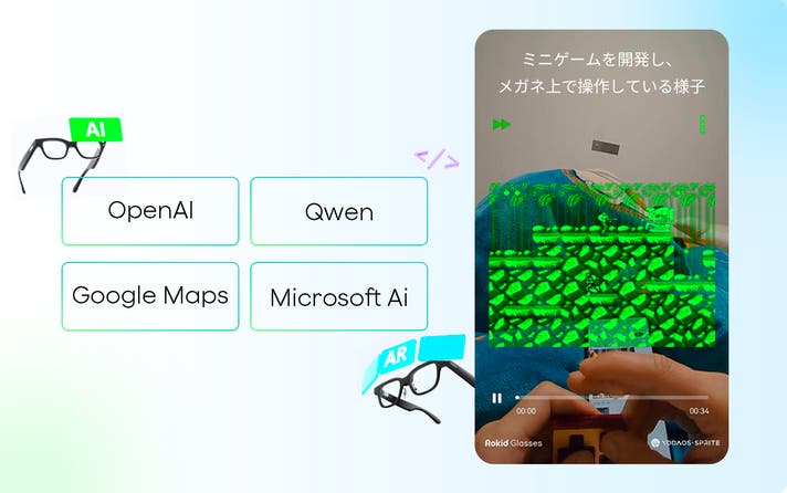 Rokid スマートAIグラスは、開発者向けに専用SDKを公開しており、Rokid独自のOS「YodaOS-Sprite」と、メガネ本体が備えるさまざまなハードウェア機能を活用して、株価情報を確認できるアプリや、メガネ上で操作できるミニゲーム、業務支援を目的とした情報表示アプリなど、一般向け(toC)から業務向け(toB)まで、幅広いアプリ開発を実現できます。