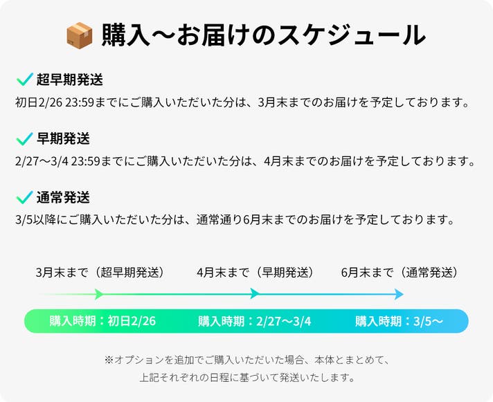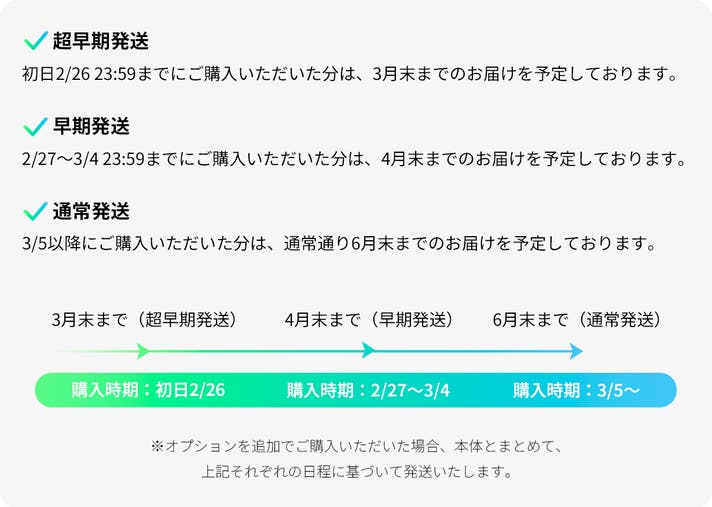 ※発送時期は一緒にお届けする本体の購入時期に準じます