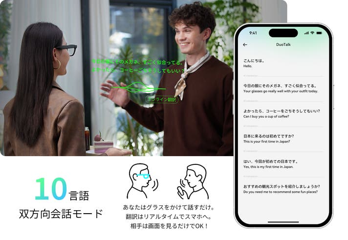 専用アプリを利用することで、相手の言葉も自分の言葉も同時に翻訳する「双方向会話モード(DuoTalk)」にも対応。
