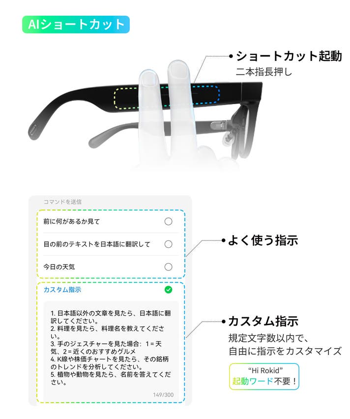 さらに、ショートカットキーに登録しておけば、声を出さなくても眼鏡をワンタッチで情報取得が可能。