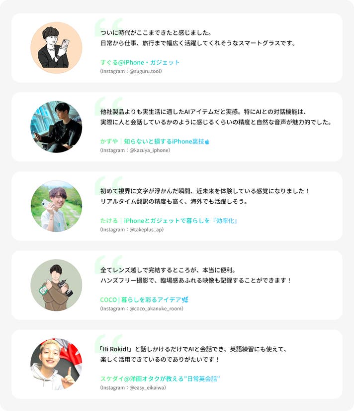 さらに、旅行で感じる言語の壁や道案内の不安を解消し、映像や写真の撮影・記録、コンテンツ制作までも直感的に行える、“未来の体験”を日本の皆さまにお届けすること を目指しています。