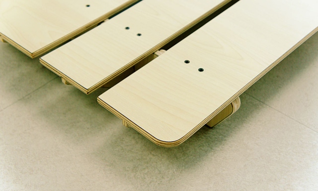 ロールベッドはすべてを手作りで製作しています。シラカバの木を使用し、軽量で持ち運びしやすいのが特徴です。できるだけ薄く製作して重量を減らしながらも、同時に体重をしっかり支えます。
