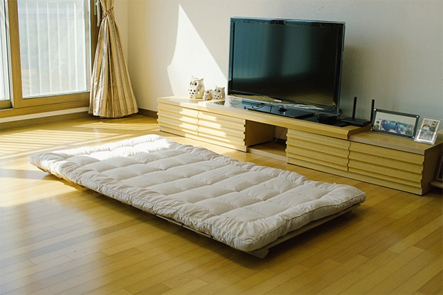 ベッドの下には埃がたまりやすいものです。狭くて手が届きにくいため、掃除もとても大変です。ロールベッドなら、巻いたあと立てて保管できるため、お手入れも楽です。