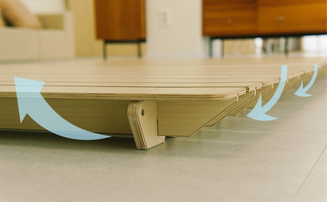 厚さ7mmの薄いシラカバの木による適度な反発性により、体重を均等に分散させ、心地のよい寝心地を実現しました。