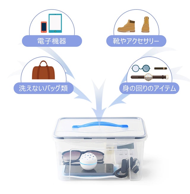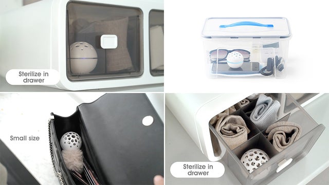 小さな箱に入れば特定のアイテムを効果的に除菌することが出来ます。スマホ、財布、アクセサリーなど、洗濯できないアイテムに効果的です。