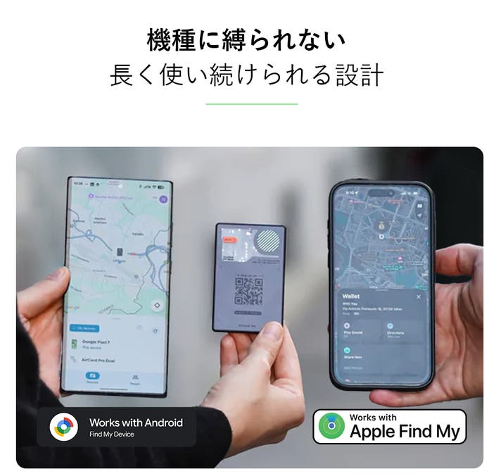AppleもAndroidも、機種を問わずすぐに使える!専用モデルの制限はなく、機種変更後もそのまま使用可能。家族や職場での共有にも対応し、今の端末でも次の端末でも長く安心して使えます。「この機種で使えるか」を気にせず、必要なときに、必要な人が使える。そのシンプルさが、使い勝手を大きく変えます!