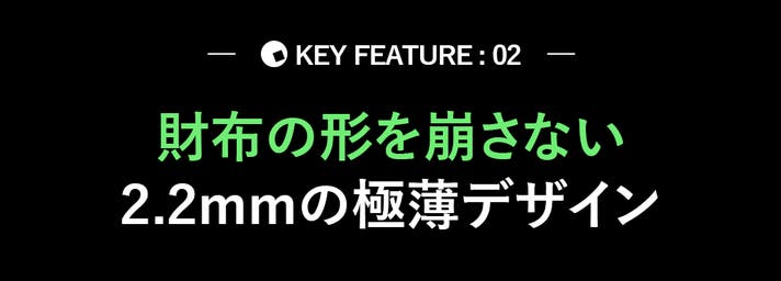 超薄型設計でありながら、アルミニウムとファイバーグラスを組み合わせた高耐久構造を採用。日常使いでも安心して使える強度を確保しています。財布の形を崩さず、取り出すたびにストレスを感じさせない設計です!