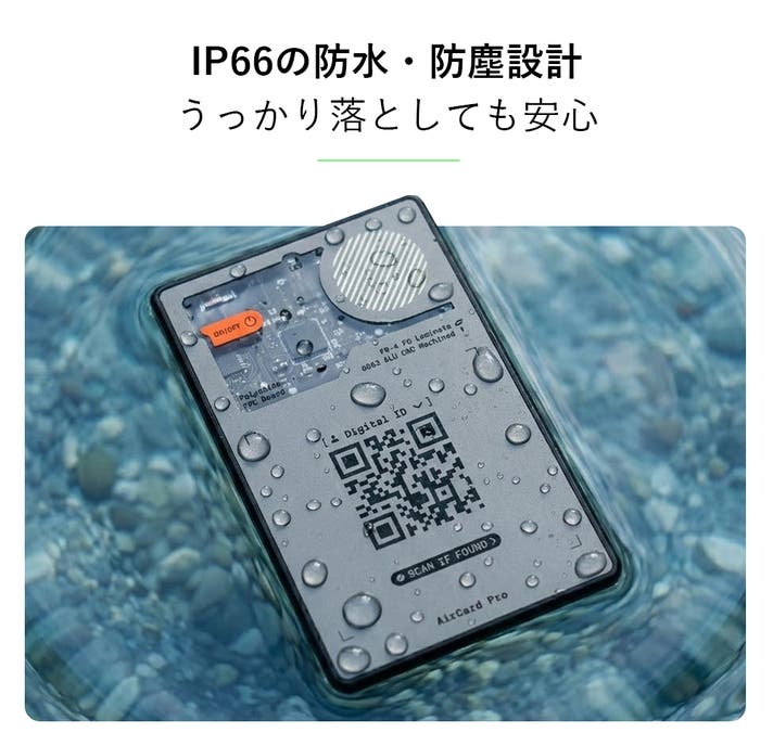 万が一水に落としても濡れても安心!AirCard Pro DualはIP66の高い防塵・防水性能を備えているので、雨の日やキッチン、プールサイドなどでも安心。埃や水を気にせず、日常のあらゆるシーンで自由に使えます!