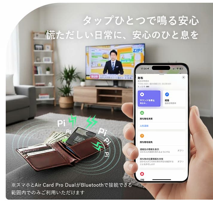 忙しい朝も財布や鍵がすぐ見つかる!スマホでサウンドを再生するだけで安心が手元に届き、毎日にちょっとした余裕が生まれます!