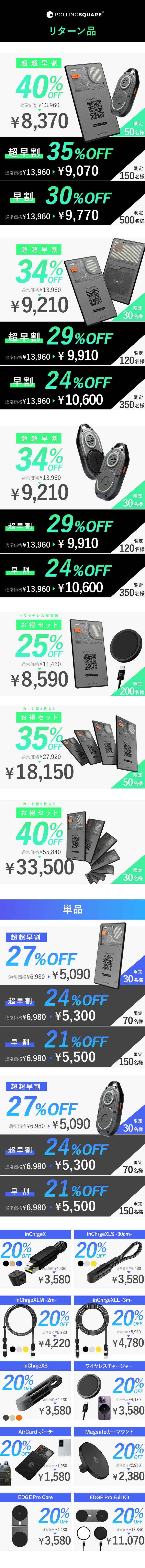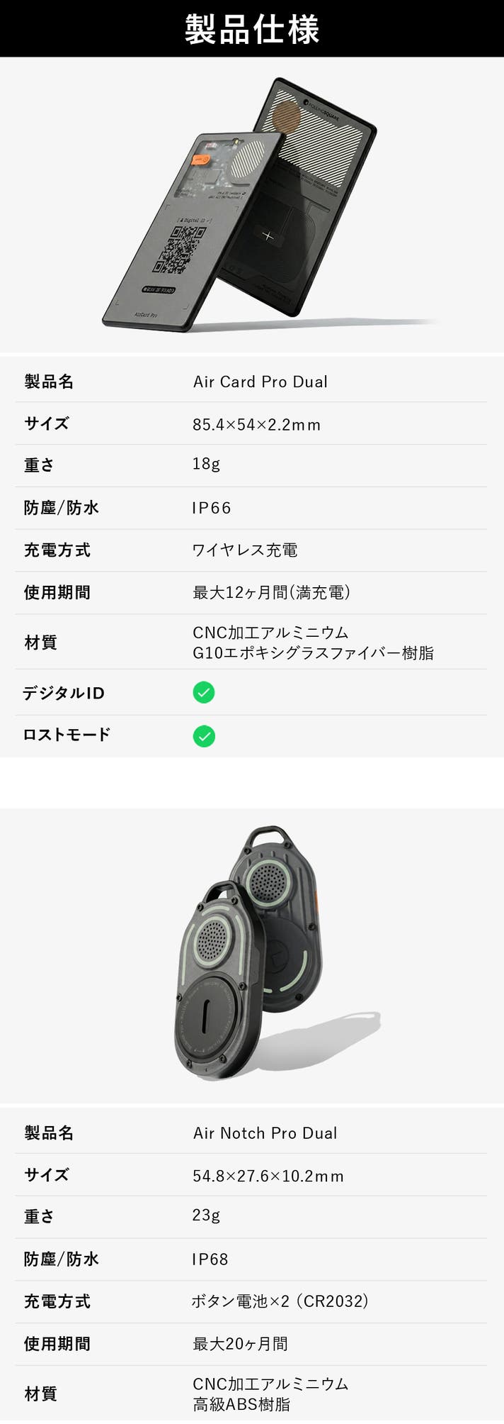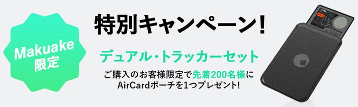 セット名「デュアル・トラッカーセット(Air Card Pro Dual & Air Notch Pro Dual )」の**超超早割(50名様限定/40%OFF)・超早割(150名様限定/35%OFF)**に適用されます。