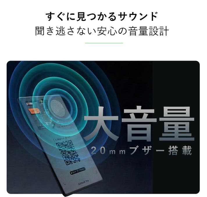 部屋中に響く大音量サウンド!ワンタップで鳴らせば、どんな場所でもすぐにアイテムを発見。探す時間をぐっと短縮!