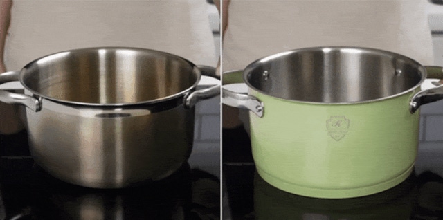 金属製の鍋やフライパンは、IHクッキングヒーターやガスコンロで加熱しますと、膨張することがあります。