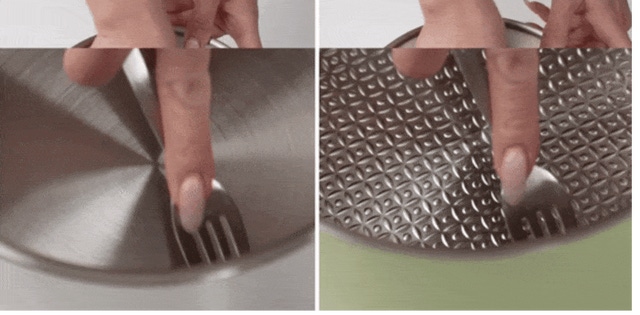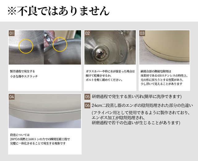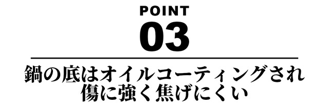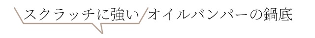 オイルバンパーで鍋底をもう一度固め、高熱による形の変化、ねじれ防止に役立ち、スープ、お鍋など料理前に少量のオイルで※マイヤール反応を活用して材料を炒めやすく、焦げにくい特徴があります。
