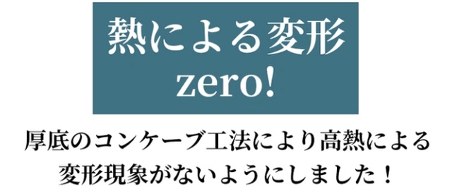 この為フライパンの底面を平らにしてしまうと、加熱により底面が外側へ膨張する変形が生じる恐れがあります。底面が外側へ膨張すると、IHクッキングヒーター上でガタつきを起こしたり、回転したりして不安定になり調理ができなくなる恐れがございます。