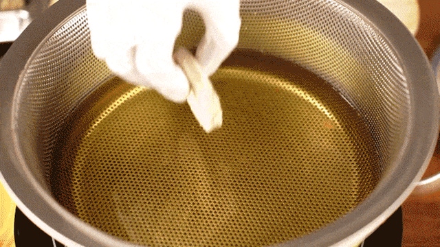 揚げ物の調理時にロールスコランダーを使うと、天ぷら粉を途中で捨てたりすることができるため、より綺麗な油を使用でき、ガラスの蓋を閉めて油が飛び散るのを防止し