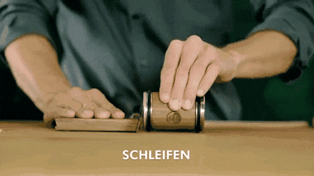 ドイツのメーカーが機能に次いでこだわるデザインは、専用スタンドにも然り。ROLLSCHLEIFER(ロールシュライファー)本体の存在を引き立たせるシンプルなデザインと、無垢材を彫ってジャストサイズに作る技術、そして素材の質の高さに改めて感動しています。