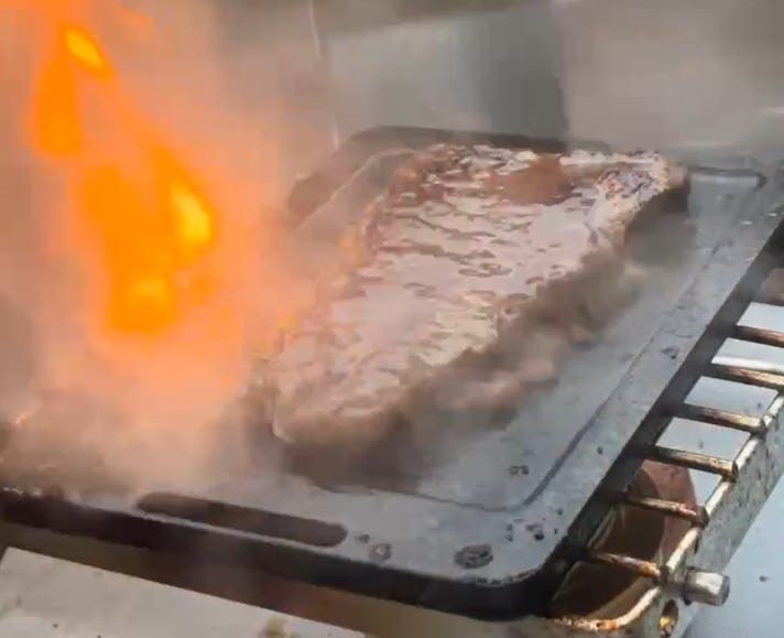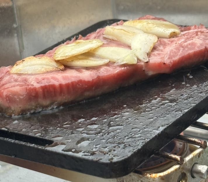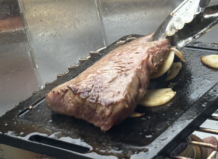 スーパーで買った安いステーキ肉を鉄板にのせて焼いてみると……。